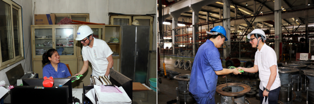 6月13日,端午节期间,东方泵业生产车间现场依旧热火朝天地进行作业。集团董事长助理吴俊力等高层领导组成的慰问小组,深入公司一线,为节日期间依然奋战在一线、坚守在岗位上的职工送去了飘香的粽子,同时向职工家属给予的理解与支持表示最诚挚的感谢!